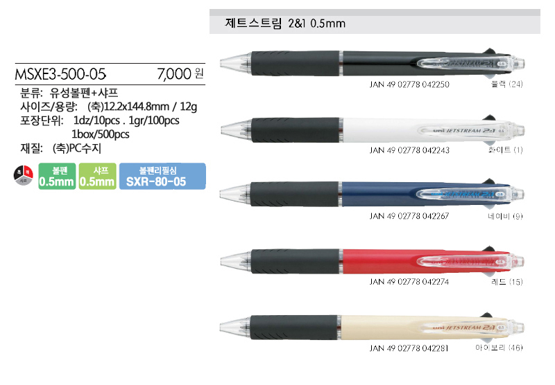 > 유니 제트스트림 2+1 0.5/MSXE3-500-05